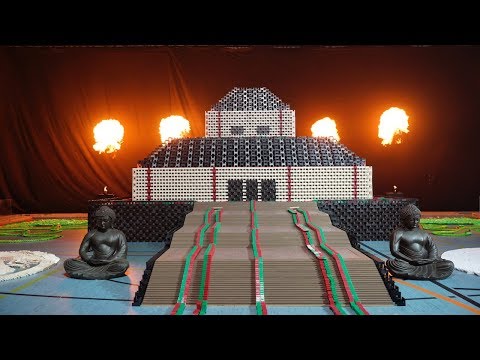 Pyrotechnische Effekte begleiteten die Dominosteine spektakulär, als beispielsweise Leonardo Da Vincis „Mona Lisa“ und ein drei Meter hoher und aus über 30.000 einzelnen Dominosteinen bestehender chinesischer Tempel in sich zusammenfielen. Auch die Builders-Challenge glückte: Justin Kühn schloss unter hohem Druck eine Verbindungslinie in der Mitte eines Domino-Labyrinths und gab den Weg auf eine Wand aus Dominosteinen hinter ihm frei. Die Herausforderung gelang, obwohl Kühn innerhalb des Labyrinths etwa 30 Dominosteine mit dem Fuß berührte, die aber in die zum Glück richtige Richtung fielen.