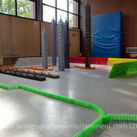 Innerhalb von fünf Minuten fielen insgesamt 38.642 der aufgebauten 42.800 Dominosteine und bescherten dem Team einen neuen hessischen Landesrekord, der zuvor bei 37.014 Steinen gelegen hatte.