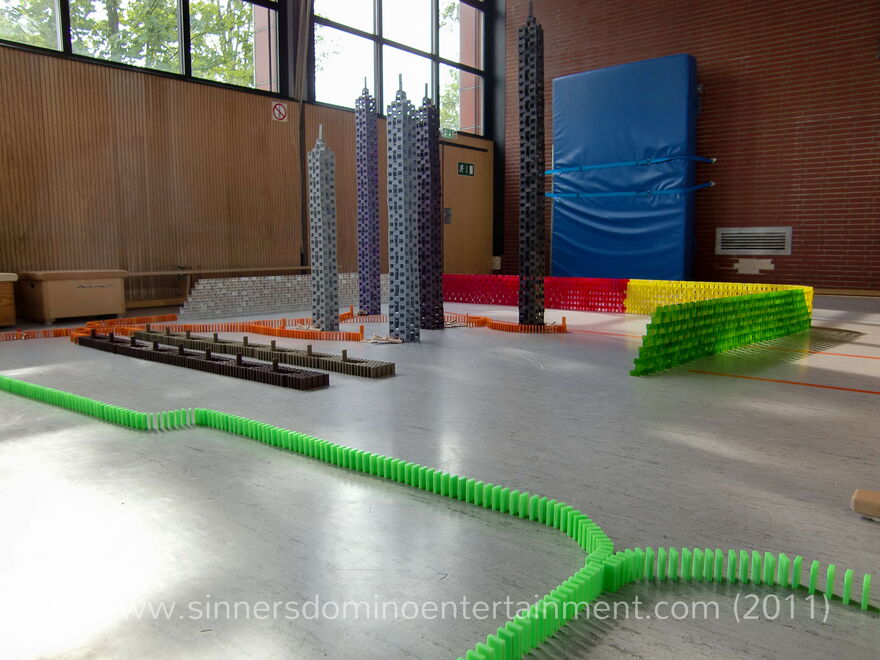 Der Aufbau „In a Second around the World“ am vergangenen Freitag war für Sinners Domino Entertainment eine Premiere. Erstmals baute das Unternehmen mehrere Motive unter einem Motto auf und filmte das Fallen der Steine für die Veröffentlichung im Internet.